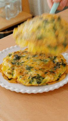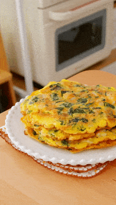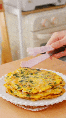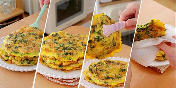 相比那种面饼,我更喜欢蛋饼软嫩的感觉。3个鸡蛋,不多不少的量,刚刚好够全家吃。