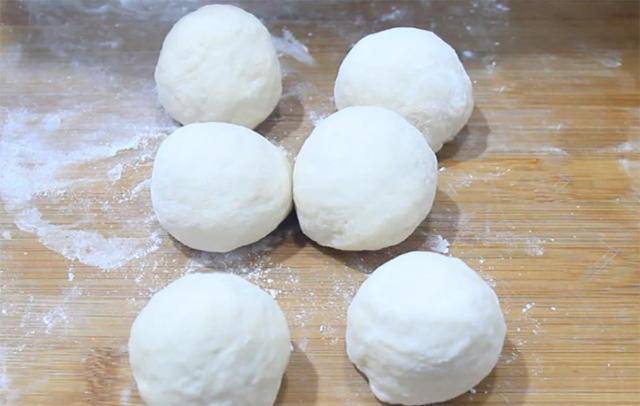 3.1个小时以后在案板上撒上底面粉,把发好的面团拿出来,多揉一会儿排排气,把面团搓成长条下6-8个面剂子,把面剂子揉圆用细布盖住,以免面受风变干。