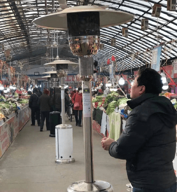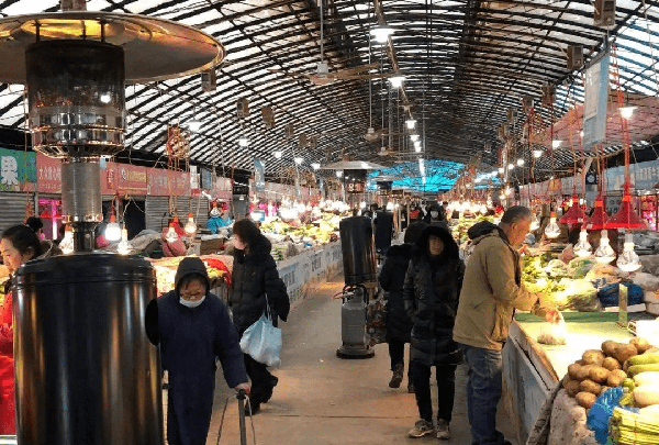 除了超市有空调外,东北的菜市场都没有暖气,菜市场的温度比户外高10℃左右,也是非常寒冷的。于是大家统一购买了高2米多的电暖炉,每隔4-5米放置一个,可以把菜市场内的温度提高不少。摊主们在看摊空闲的时候,经常到电暖炉旁边烤烤手取暖,毕竟在这样低温的市场里呆一天,保持手脚的温暖还是必要的。