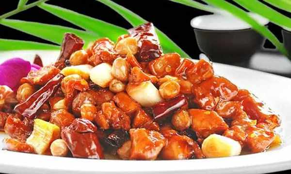 3.将鸡丁、香干丁、花生仁、葱段装人盘内,浇上麻酱红油味汁。一道色泽淡红,鲜香麻辣,酱味浓厚的拌鸡丁就完成了。
