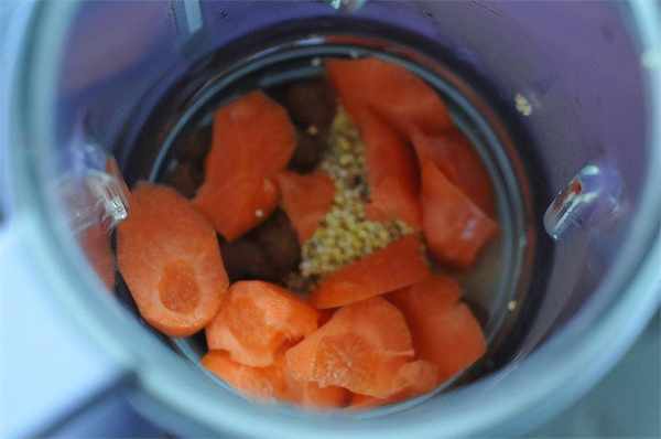 将红枣、小米、胡萝卜都倒入料理机中。