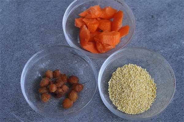 食材:小米一杯 桂圆一把 胡萝卜一个