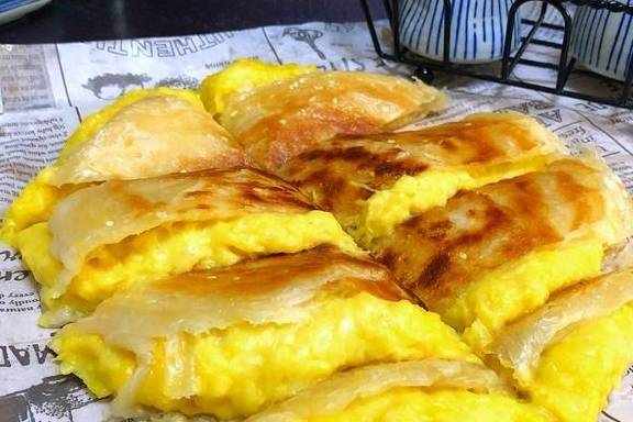 也是网红美食,我记得爆红的时候38一个,还很多人排队。其实这个饼在家平底锅就能做,用手抓饼替代的话,连面都不用和了。