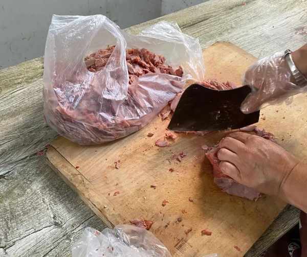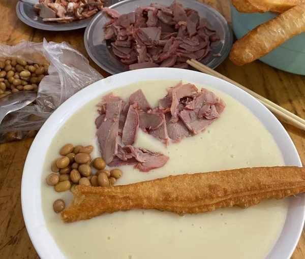 当然,店铺里也准备了配菜,让客人下饭吃。配菜只有两种,一种是羊肉,另一种是黄豆。值得一提的是,羊肉非常受顾客欢迎,老板把羊肉煮好,之后让服务员切成小块,客人要多少就称多少,大家都喜欢把羊肉拿来泡饭,咸香的羊肉和顺滑的粥,搭配起来堪称绝配。