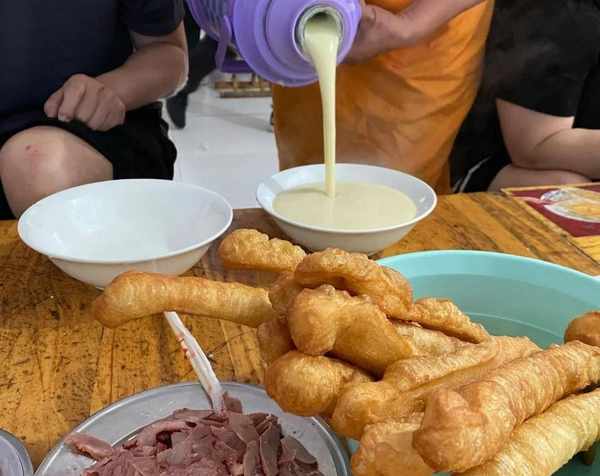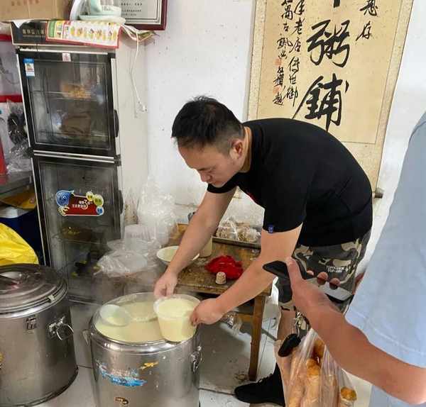 我们平常喝的粥,都是把米洗干净,直接放到锅里熬煮的,但是这家店铺做粥的手法,可谓是完全不一样,老板先是用机器将米打成米浆,然后再放到大锅里熬煮,这样煮出来的粥更加顺滑,由于水分添加得恰到好处,所以吃起来也不会像吃米糊一样。
