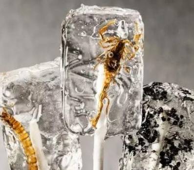 第1种就是这个昆虫棒棒糖,每一只棒棒糖里面都会有一只昆虫,昆虫的种类也是不一样的,如果看不见的话,那就算了,但是这个棒棒糖,还是透明的,里面的昆虫可以看得清清楚楚,很多人看了这个棒棒糖以后都觉得下不去嘴,其实这个棒棒糖并不难吃,只不过让人有点接受不了。