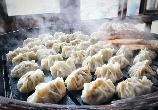 它的馅料主要是羊肉或猪肉,用葱、姜、五香粉、香油、盐调配而成,包上面团,入锅中压扁,用温油和水煮熟,最后加入稀薄的水面糊,在炸包子底部形成一朵美丽的冰花。这种“水煎包”两面金黄,外皮酥脆,尤以河南平顶山、河南永城、山东菏泽等地最为盛行。