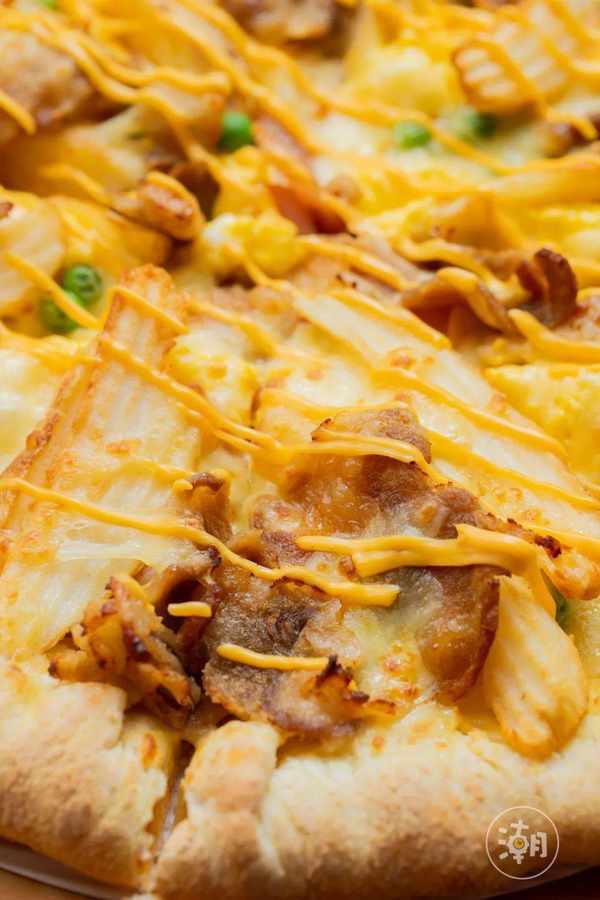 照烧风味牛肉土豆比萨是达美乐的经典款,每桌必点!薯角超大块,外酥里软。搭配咸香浓郁的培根和香气四溢的照烧风味牛肉,牛肉带着丰盈的肉汁,油脂感超爽!咸甜的蛋黄风味酱打底,口味更有层次感。