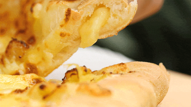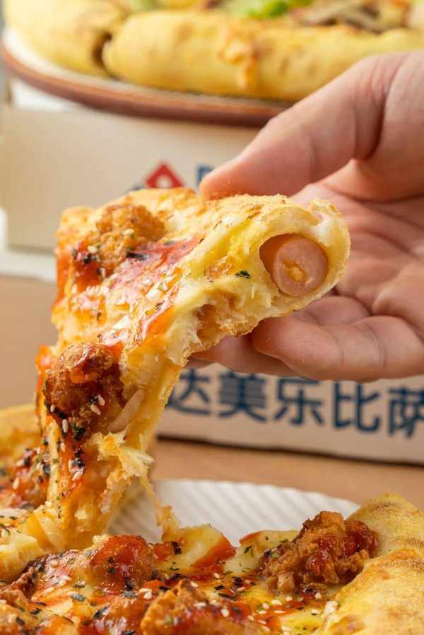 没想到吧,比萨的卷边也可以加上实实在在的烤肠!达美乐家烤肠里面还加入了少许芝士,增添了整体的风味,“食肉族”狂喜!