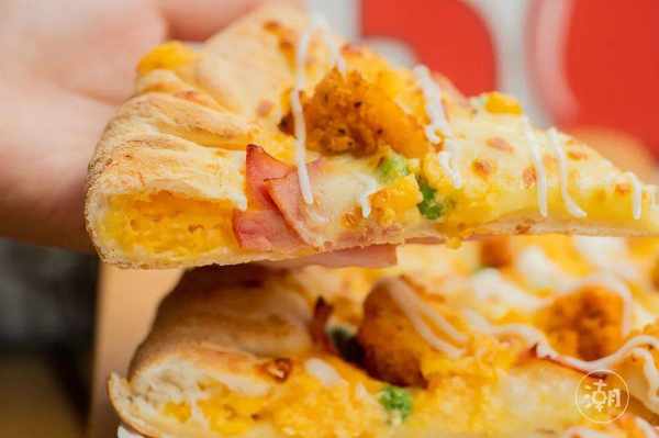 肉肉香粉松卷边用料也是非常扎实,卷边里面被香粉松完全填充,仿佛再吃香粉松饼的感觉,非常幸福!肉肉香粉松卷边也非常百搭,和苏丹王榴莲多多比萨、培根多多肉肉香粉松土豆比萨都是绝配!