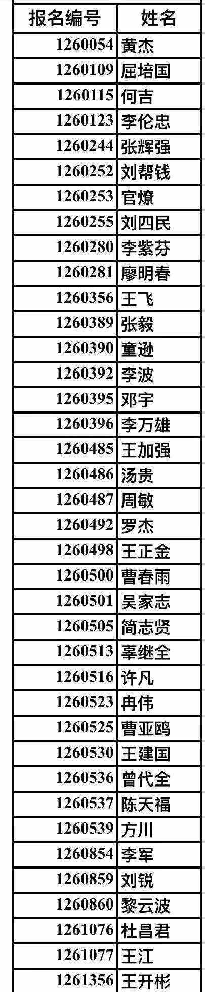 (排名按报名编号)