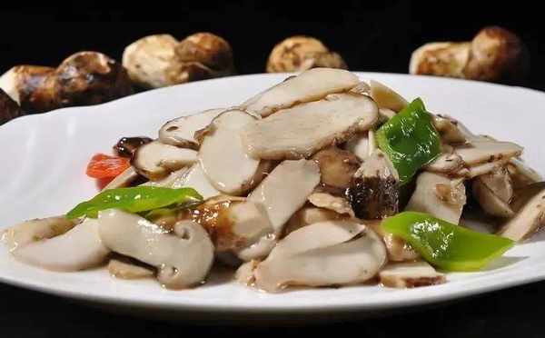 9 稍煮一会,把松茸也加进去,放少量的盐翻炒均匀