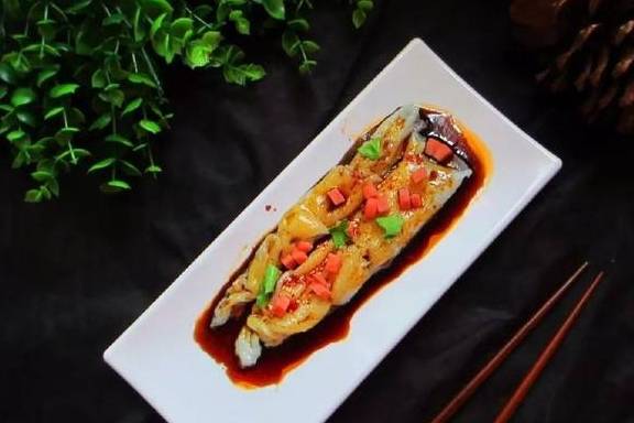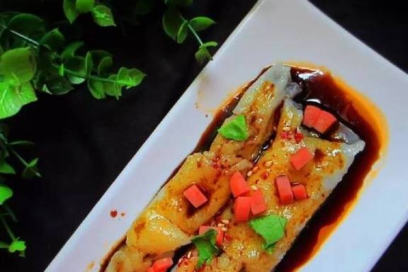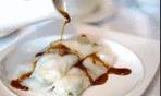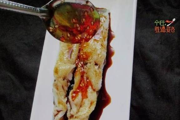 以前去广州小吃店吃过一回的肠粉,这种又滑又嫩的肠粉却让人喜爱至极。看看这肠粉又白又嫩,淋着酱汁,真的很美味~