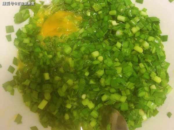 1、把韭菜清洗干净,切成小段,放入大碗里,撒上少许盐,再打入鸡蛋,倒入面粉,搅拌均匀。