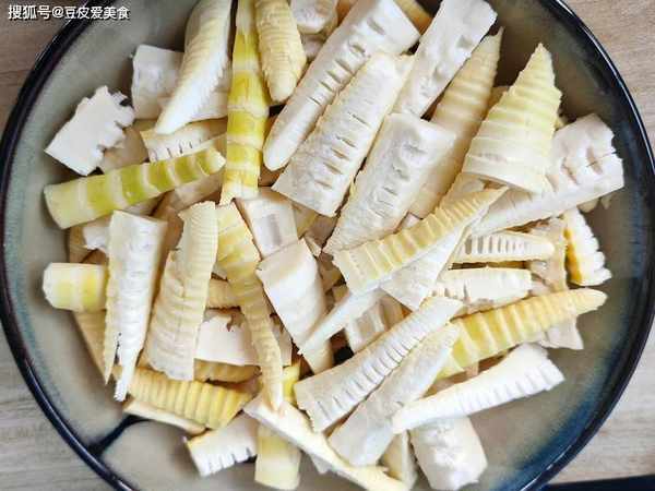 1、把春笋的外壳剥掉,根部切掉,清洗干净,切成小段。