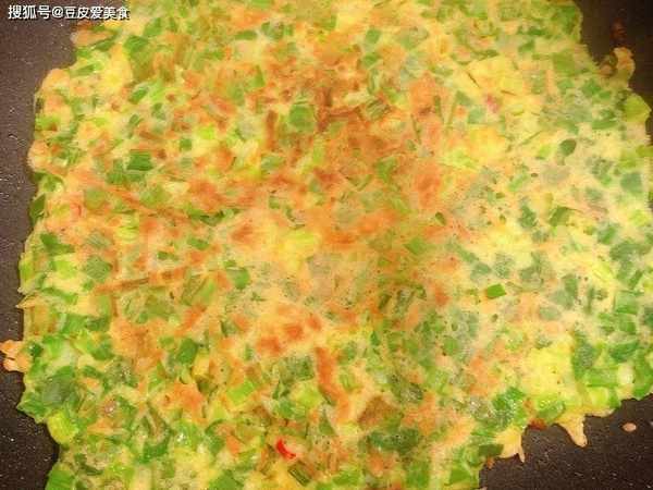3、起锅烧油,舀入1勺糊糊,开始烙,烙至两面金黄,熟透后,盛出,再舀1勺下去烙,直至全部烙完,完成。