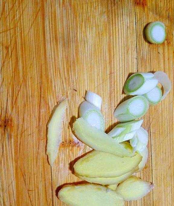 2把葱姜切成大片,青辣椒切片!