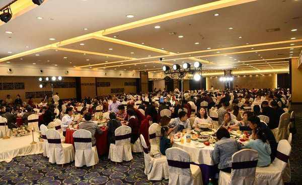当晚用餐的宾客多为新郎的家人、亲友。大多数前来助兴的明星在节目结束后只是路过就走。毕竟们不好意思一起在公共场合吃饭,肯定会抢了新郎的主角。.与此同时,很多名人也不敢随便外出就餐。例如,宴会开始后迟到的港台艺人自带酒水。新郎为艺人和经纪人安排了一个包间,供们独享。食物。