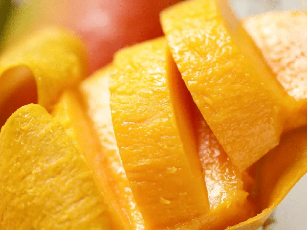 果皮特别薄,薄到可以和苹果皮媲美,小水果刀轻轻一滑,轻松切断。果肉嫩甜,没有一丝纤维,汁水丰富,就像是吃鸡蛋羹和布丁的混合体,清甜丝滑,入口即化,浓香甜味瞬间翻滚在口腔里。果核甚至比硬币厚度还薄。粘在果核上的果肉也只是有轻微的纤维,轻松剥离,再也不用和芒果核上的果肉较劲啦!