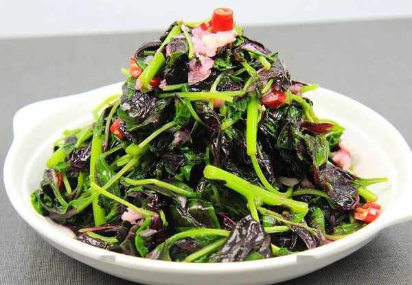 红薯叶营养价值非常高,富含各种维生素、胡萝卜素、钙等,具有补脾益气、宽肠通便、保护视力、控血压的作用。