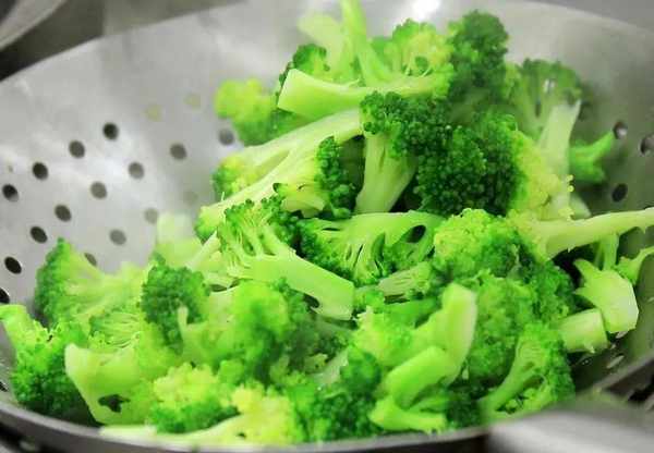 2.锅内烧水,加入食盐2克,加入食盐防止维生素的流失,并且也能使西蓝花色泽翠绿,将西蓝花焯至八成熟倒出备用。