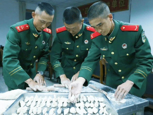 士兵们服役期结束,到了退伍之时,他们吃的最后一顿也不是山珍海味,而是大家一起弄一顿饺子吃,一起和面,一起擀面皮,一起包饺子,一起弄酱料。重要的不是吃什么,重要的是和兄弟们一起共处的时间,吃上一顿代表着团圆的饺子,大家就永远都是兄弟和战友。吃面条和饺子的习惯,已经成为了军队中传统,也分别赋予了不同的含义,重要的从来不是吃什么,而是和谁一起吃。