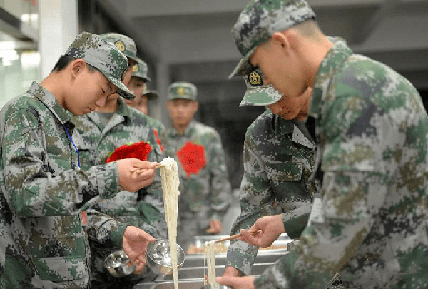 事实上,军队里也不会为了新兵入伍专门搞什么八大菜系,往往都是十分的朴实无华,非常接地气。新兵刚入伍时的第一顿,吃的是一碗清汤面,再加上一些不同的小菜。这样不仅可以满足他们的胃口,也能照顾到各地的饮食习惯。当兵服役起码都是离家数百公里之外,一路舟车劳顿后,一下车就能吃上一碗热乎乎的面条,别提心理有多暖了。