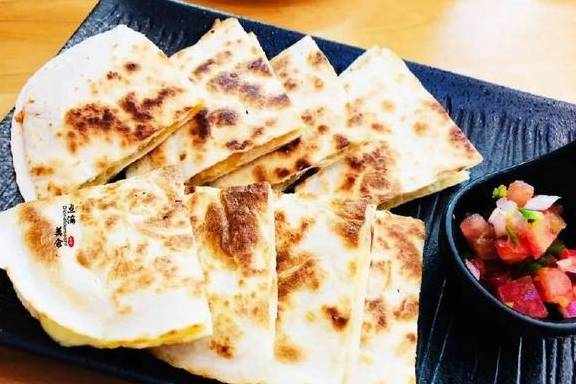 【墨西哥馅饼】【墨西哥芝士馅饼】这两个给我们放到一个盘里上了,我就一起点评了。墨西哥馅饼是团购的9.9,很薄中间馅料很少;芝士馅饼就好很多,还能你们喜欢的拉丝~对了,一份是4片,2份才是图上的8片。