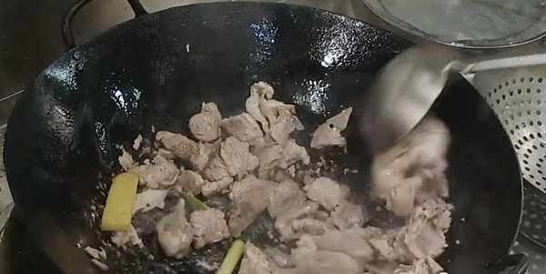 接下来锅中再加入少量的色拉油,再将控干水分的排骨倒入锅中,用小火进行简单的煸炒,这一步的目的是经过炒制之后的排骨炖制出来更香,味道更浓,