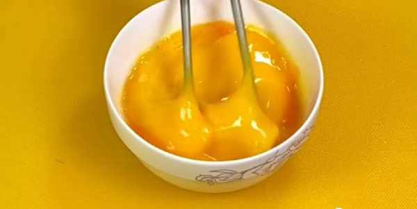 然后锅中烧热油,倒入鸡蛋液炒熟,炒成大块,盛出备用。