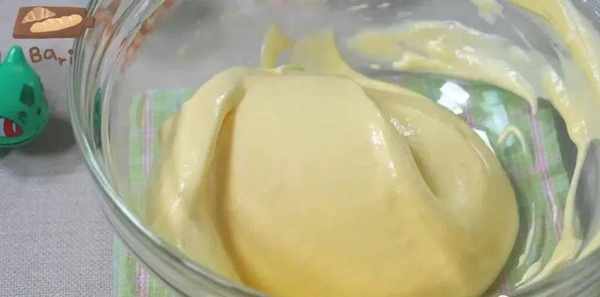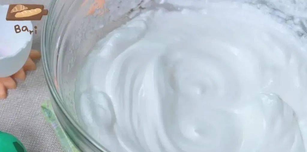 3、打成提起是尖角状时加入蛋黄跟少许盐搅打均匀后停止