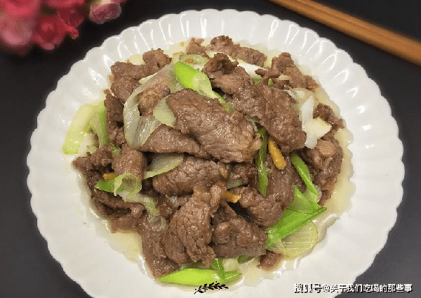 起锅烧油,放入蒜末、姜丝以及三分之一的大葱,大火爆炒出香味,倒入腌好的牛肉片,大火翻炒至变色,加入适量食盐、鸡精调味,再把剩下的大葱倒入,翻炒至断生后即可出锅。