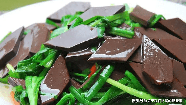 锅里倒入油烧热,放入猪血块,小火煎一会儿,颜色金黄后倒入韭菜段,大火翻炒均匀。煎过的猪血不容易碎,味道也更香,最后加入适量食盐调味,翻炒均匀即可出锅。