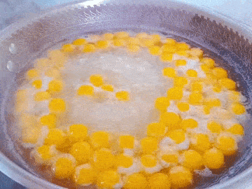 3、中火继续煮,煮到南瓜丸子圆鼓鼓的,全部飘起来就熟了。
