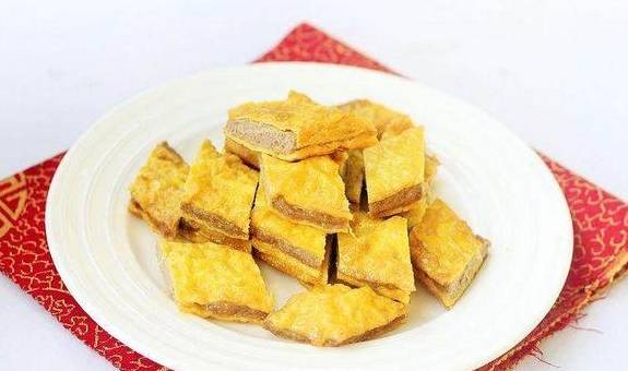 新疆回族的“九碗三行子”中的夹沙肉”,在新疆大小餐厅都很受欢迎,一般就以牛羊肉为主,外皮以鸡蛋皮为主,也有用豆腐皮做的。就看个人喜好了,餐厅一般都是鸡蛋皮为主。不要小看夹沙肉”,它可是逢年过节必备的一道菜。家庭自制一般都比较简单些,有的直接油炸之后就上桌吃了。也可以多种冷藏冰箱,吃的时候蒸一蒸又可以上桌吃了。要是讲究的话,可以加冻豆腐、粉条、白菜、香菇、木耳和黄花菜等等,翻炒均匀,倒入开水或高汤、鸡汤,再将炸好的夹沙放入锅中,一锅烩出来,这样配菜都有了,营养又丰富。