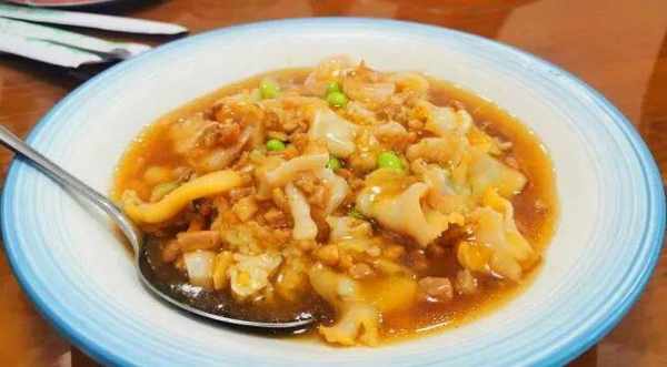海螺捞饭,是它家明星菜品,选用新鲜海螺片,加上虾仁,五花肉丁,老汤精制而成,海螺片软嫩,让米饭充分吸收汤汁儿,这样吃起来才香。