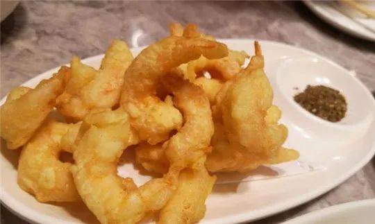 软炸虾仁,虾仁够大,淡金黄色,外表脆软、虾仁鲜嫩。牛心菜、大黄鱼、花菜拌鸟贝、炒土豆丝,都是超下饭。