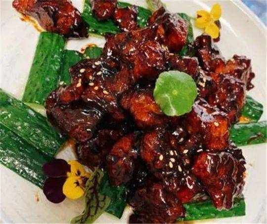 芙蓉三鲜,蛋清、虾仁、海参溜炒,海胆点缀,口味清淡。蛋黄牛蛙,裹满咸蛋黄的牛蛙腿,入口沙而不散,咸淡调味得刚刚好,还保留了蛙肉本身的鲜味,一口一只腿。
