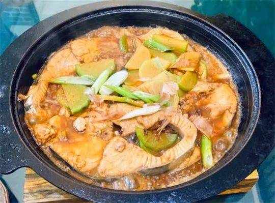 主推的石锅鳝鱼芸豆,芸豆炖得软烂,鳝鱼炖得入味,咸鲜口。石锅鲅鱼炖萝卜,这道菜底部放有切片的萝卜,外面铺满鲅鱼,炖到最后,萝卜也带了鱼味,更好吃。