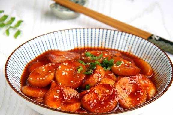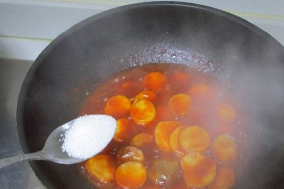 烧制汁水浓稠再加白糖调整酸甜味后熄火出锅