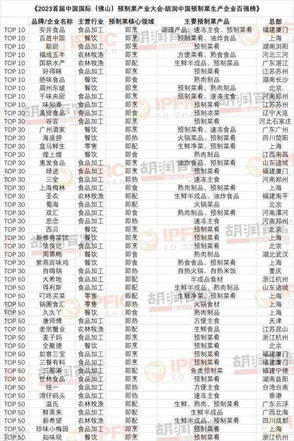 《2023首届中国国际(佛山)预制菜产业大会·胡润中国预制菜生产企业百强榜》