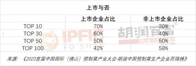 上市企业占比42%;非上市企业占比58%。TOP 30预制菜生产企业中,上市企业占比达到60%。