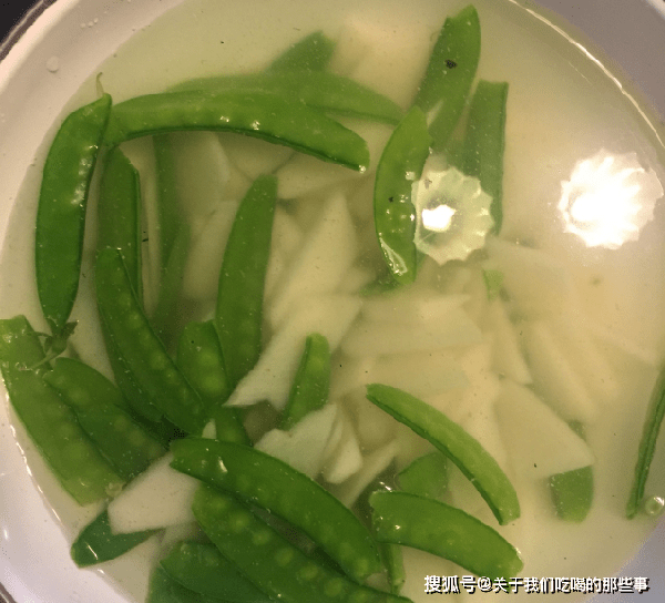 1、木耳提前用水泡2小时,泡软后去掉根部,撕成小块。山药去皮,洗干净后切薄片。荷兰豆撕掉老筋,洗干净备用。香葱切葱花。