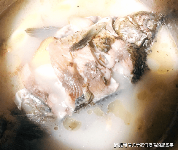 3、大火煮10分钟,鱼汤变白后放入豆腐块,继续炖10分钟,放入适量食盐、白胡椒粉,再炖5分钟即可关火出锅。