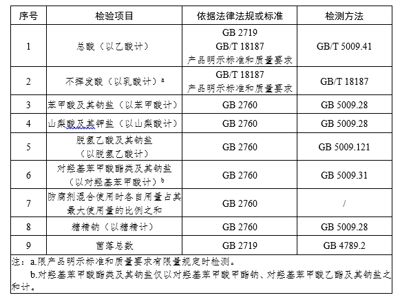 适用范围:适用于食醋食品安全监督抽检,不包括配制食醋等非发酵工艺生产产品。