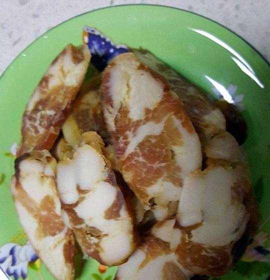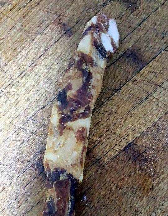1.取出一根腊肠,用温水冲洗一下