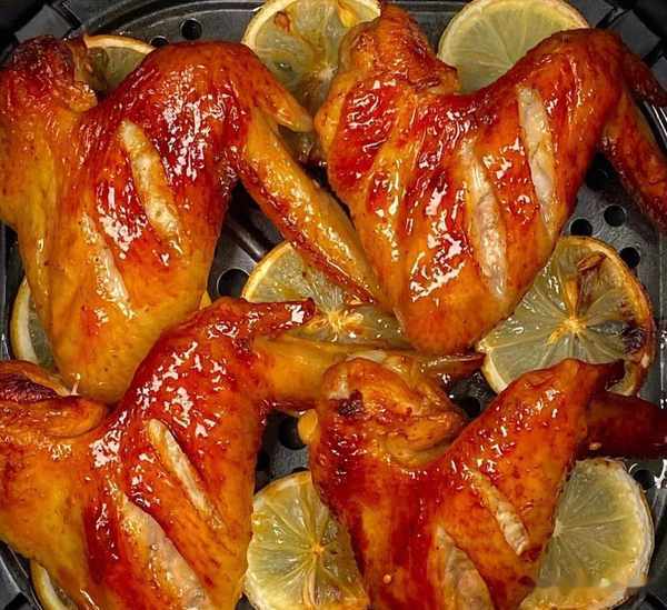 2、 空气炸锅铺一层柠檬片放鸡翅。