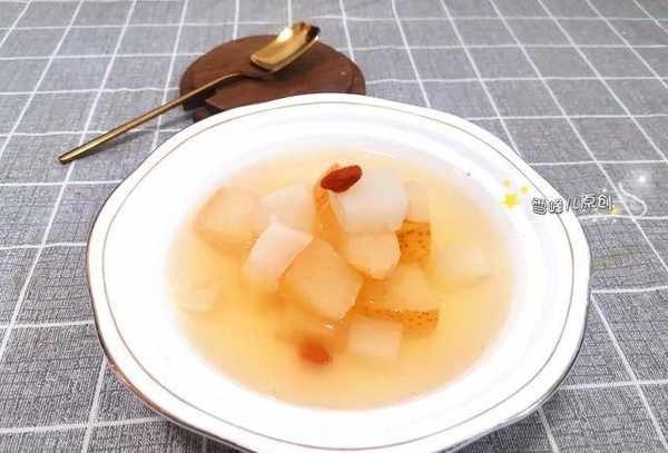 雪梨萝卜汤做法:原料:雪梨2个、白萝卜适量、蜂蜜少许。1.雪梨洗净切块,白萝卜洗净切丁,一起放入锅中煮滚。