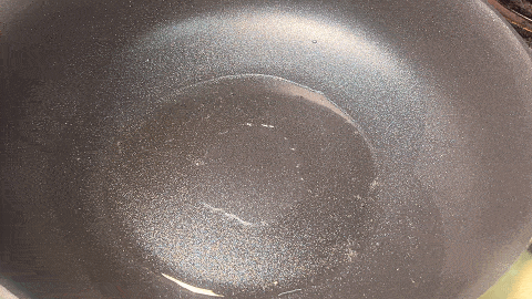 5.锅中倒入食用油,放入韭菜翻炒