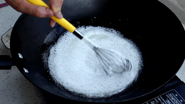 具体方法(1)将100毫升纯牛奶、1克盐、30克糖和25克食用油依次倒入锅中,改小火,不断搅拌使糖溶化。